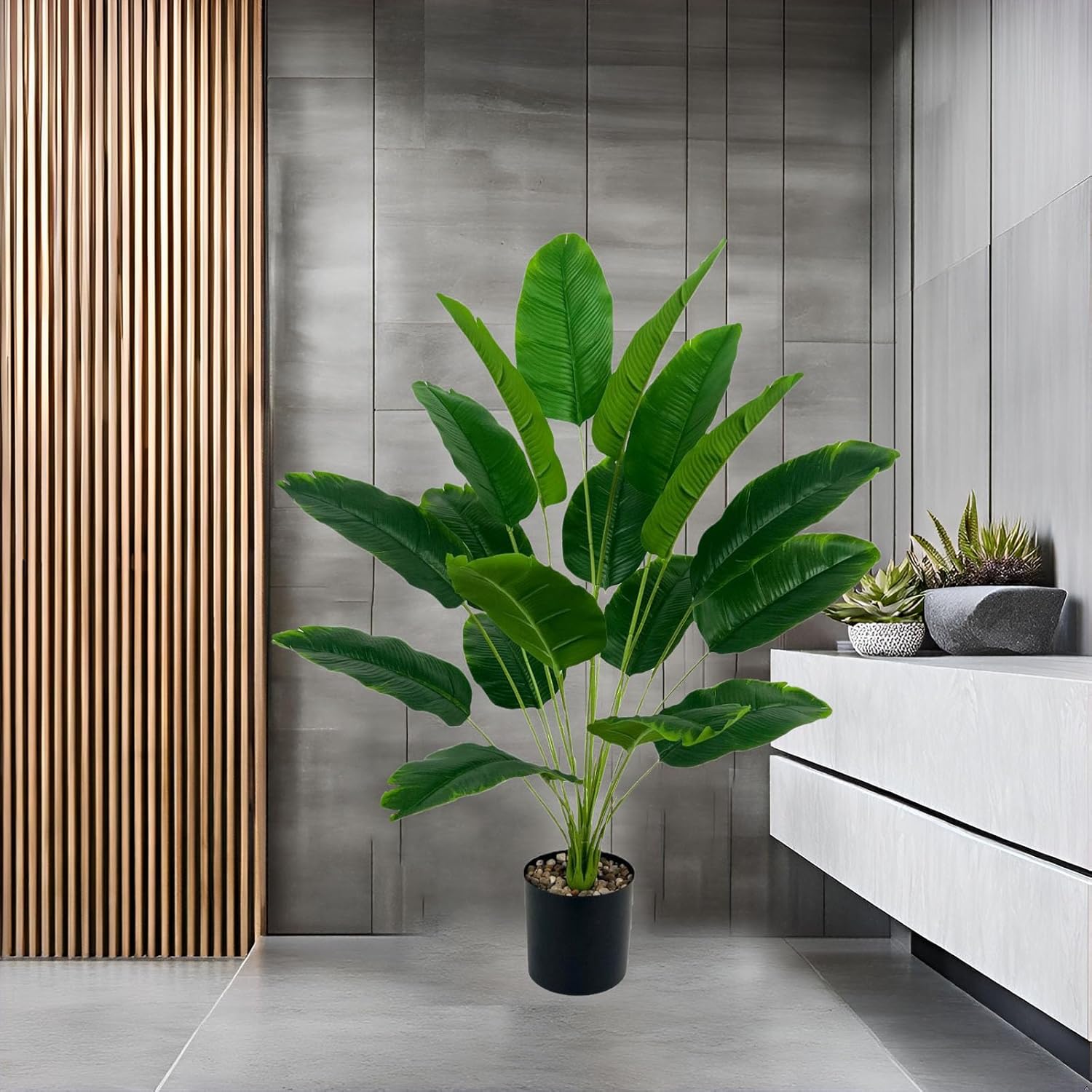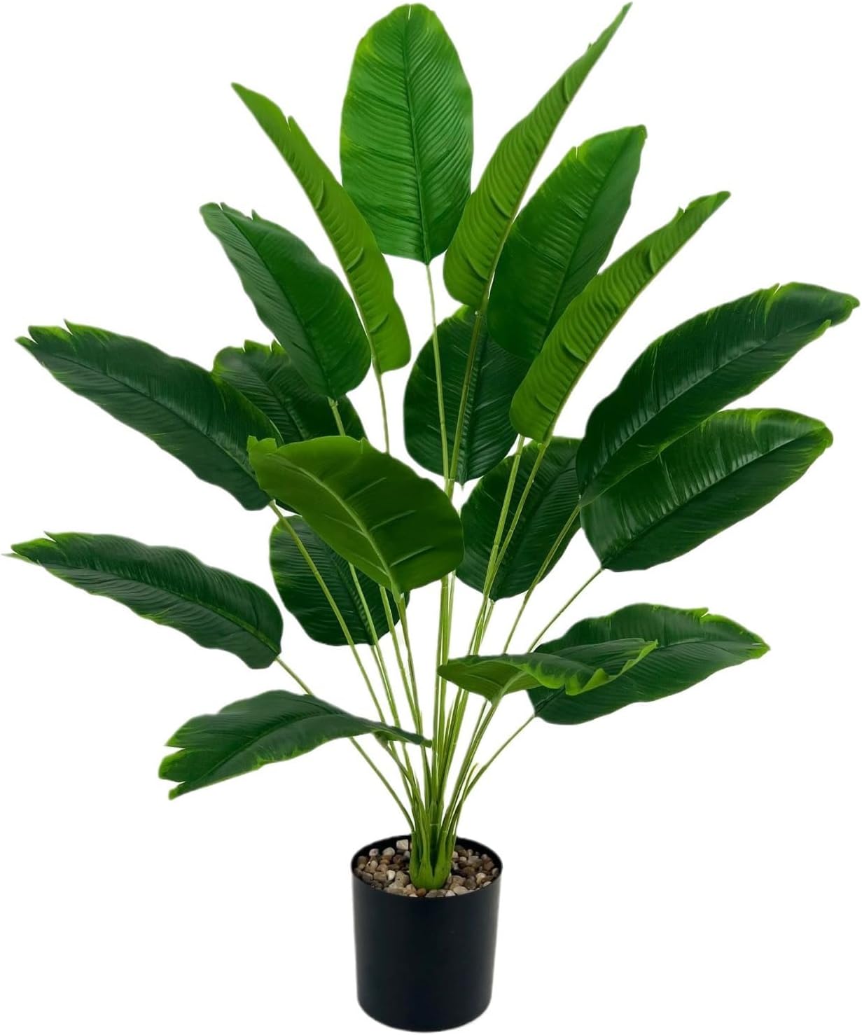 Artificial Bird of Paradise Plant 28“, 18 Trunks, Faux Palm Tree in Pot for Indoor/Outdoor Décor